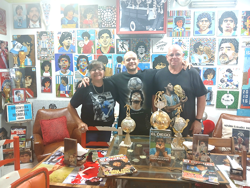 Uno me regaló una bandera, otro me regaló un cuadrito, después empezamos a hacer cuadros nosotros. Además, durante veintipico de años le hicimos fiesta a los Maradona, a los nietos de Ana, ya conocíamos a la familia y siguen viniendo hasta hoy en día. Ha venido Dalma, nos ha venido a visitar porque la última vez que había venido acá era muy chiquita. Vienen las hermanas, los cuñados. Cada día va creciendo más el lugar.