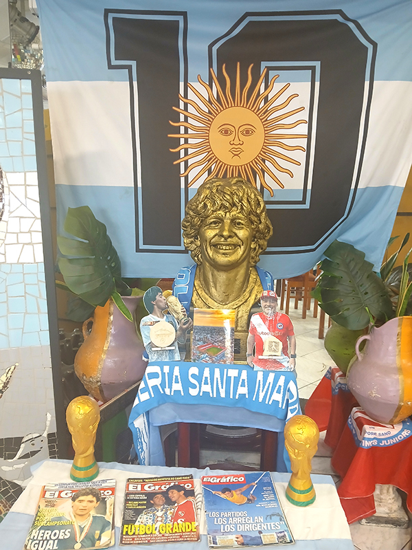 Viene mucho turismo, porque hacen todo el recorrido, van a la cancha y después vienen para acá. Ahora se está armando otro tour que van a Villa Fiorito, pasan por Argentinos Juniors, por la Casa de D10S y nosotros vamos a hacer el desayuno, merienda o lo que sea, según el horario que vengan. La idea del recorrido es que se encuentren acá o terminen acá, se está armando, ya se hicieron un par y la gente está muy contenta, muy conforme. Hay contacto con Nápoles, está la idea de llevarlos a Nápoles, pero bueno, es un proyecto que se está armando.