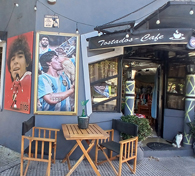 Acá teníamos el salón de fiestas La Casita de Emanuel, el problema fue que en la pandemia lamentablemente nos quedamos sin trabajo, y como la habilitación del lugar figuraba como café bar, dijimos: “bueno, vamos por este lado”. Fuimos despacito armando una cafetería con cosas antiguas, inauguramos el 2 de noviembre de 2020 y el 25 se nos va Diego y como esta era la esquina donde paraba Diego, porque acá funcionaba la pizzería La Cuneta, entonces, la gente se empezó a acercar y a contar anécdotas como: “yo lo conocí a Diego acá”, “Diego siempre estaba acá”, así se fue armando La Cafetería de D10S.