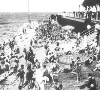 Todo empezó con estilo y ambición. Cuando a la Buenos Aires moderna se le ocurrió que quería un balneario, no se achicó. En 1918, en lo que hoy es el pulmón verde de la Reserva Ecológica (y cuando Puerto Madero ni siquiera era un sueño en un plano), se inauguró con bombos y platillos el Balneario Municipal de la Costanera Sur. Imaginate la escena: cientos de vecinos, de todas las clases, bajando por las escalinatas del “Espigón Plus Ultra” para meterse en el río. Había vestuarios, paseos arbolados, carnavales y colonias de vacaciones. Una “Bristol porteña” en blanco y negro, donde las familias pasaban el día y los pibes se tiraban de cabeza sin miedo. Hasta un documental yanqui de los años 30, Romantic Argentina, capturó esa postal feliz y masiva. Hasta ahí, todo era fiesta.