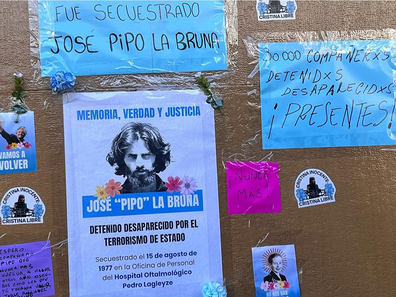 A 48 años de la desaparición del militante popular José “Pipo” La Bruna, familiares, amigos, compañeros de Pipo, vecinas y vecinos del barrio, realizaron un homenaje en la vereda del hospital oftalmológico Pedro Lagleyze, ubicado en Juan B. Justo 4151, donde trabajaba y en 2018 se colocó una baldosa por la memoria.