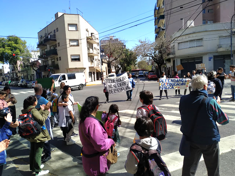 Bajo la consigna “La Escuela No se Cierra”, la comunidad educativa de la escuela Fray Justo Santa María de Oro realizó un nuevo semaforazo este viernes 12 de septiembre en la esquina de A. Álvarez Jonte y Andrés Lamas. La protesta, que ya se ha convertido en una modalidad habitual, consistió en aprovechar la luz roja del semáforo para mostrar carteles y repartir volantes entre los automovilistas, con el objetivo de alertar sobre el posible cierre de la institución.
