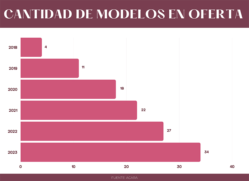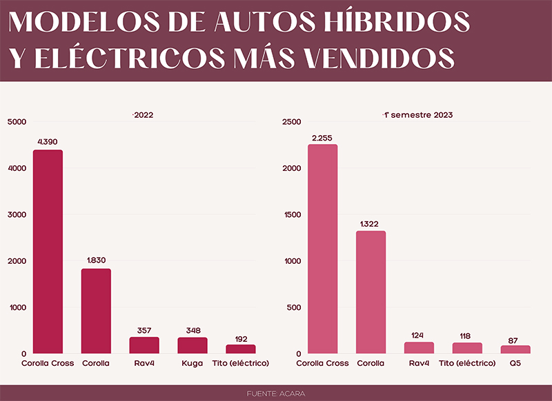 Un informe de la analista de datos Melisa Murialdo, señaló que, en ese año del total de unidades comercializadas; 7.588 correspondieron a híbridos y 260 a eléctricos puros. Además, el 2022 fue de suma importancia para la industria, ya que adicional al incremento de ventas, también se sumaron nuevos modelos a la oferta.
