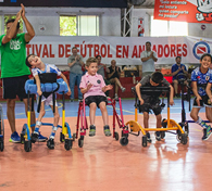 Esta variante adaptada del fútbol permite que niños, niñas y jóvenes con movilidad reducida participen utilizando andadores, que les otorgan estabilidad y seguridad. La dinámica promueve no solo la actividad física y la diversión, sino también valores como el trabajo en equipo, el respeto y la superación personal.