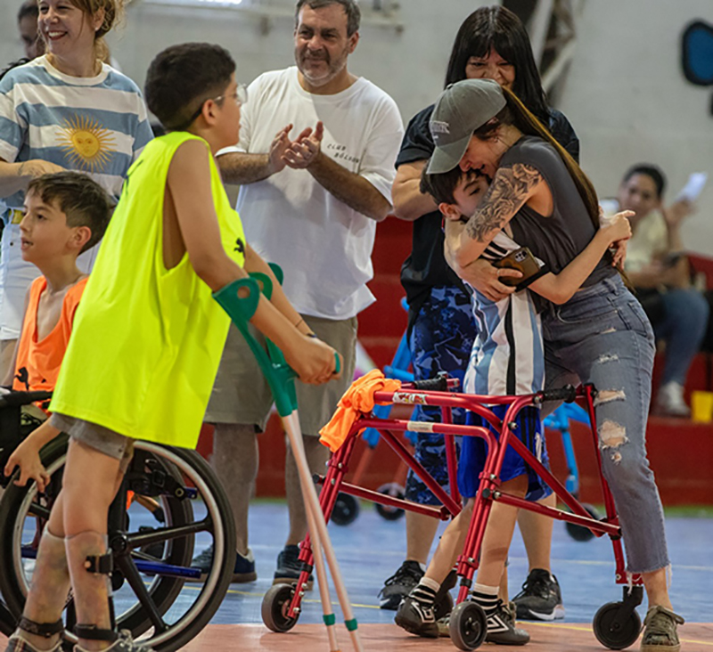 “No se trata solo de que puedan caminar —explicó Vaccarini—. En el primer festival tuvimos casos de chicos cuadripléjicos que eran guiados por sus padres en el andador. Fue emocionante por donde se lo mire: para muchos era la primera vez que podían ‘jugar’ un partido, patear una pelota”.