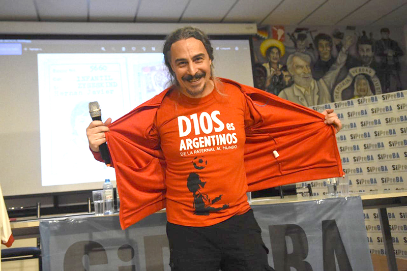 Es autogestión pura, independiente. No hay una editorial por detrás. Siempre rescato que la obra es el mérito más grande, lo que a uno más lo llena. Me siento muy contento de ser, de alguna manera, el transmisor del Diego de Argentinos para un montón de gente. Es felicidad pura. D10s Es Argentinos se puede conseguir en Sporting Deportes en la calle Jonte.