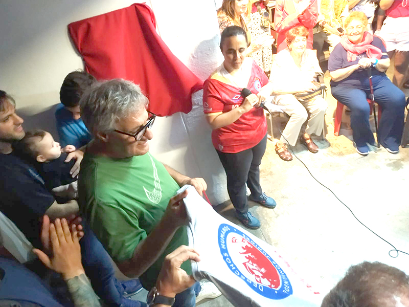 Seguidamente, Carlos Feldman, hermano de José Eduardo “Tucho” Feldman, acompañó a Cristian Malaspina en el descubrimiento de la nueva placa. El acto concluyó con la tradicional invocación: los presentes nombraron uno a uno a los ocho homenajeados, respondiendo cada nombre con un “¡Presente, ahora y siempre!”.