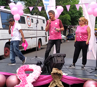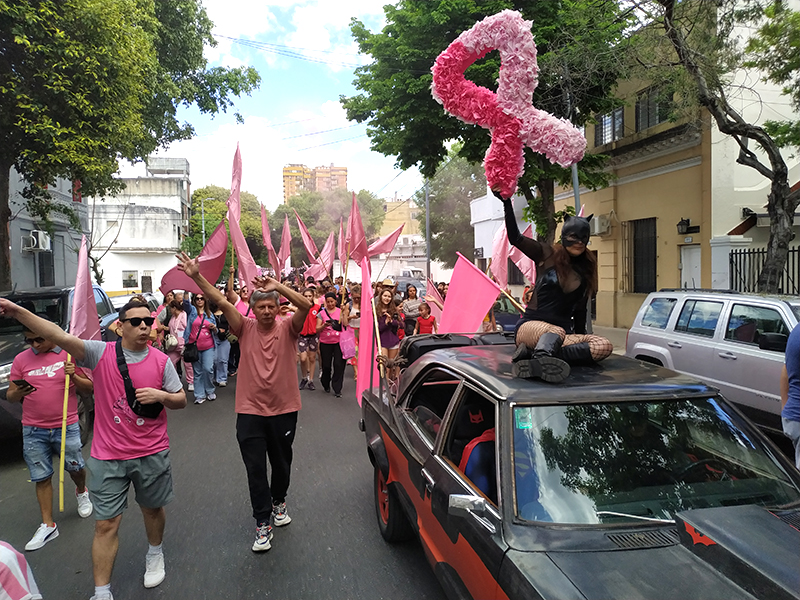 En el marco del Octubre Rosa, superhéroes, murga y más de un centenar de vecinos recorrieron las calles en la tercera edición de la ya tradicional movida que promueve la detección temprana.