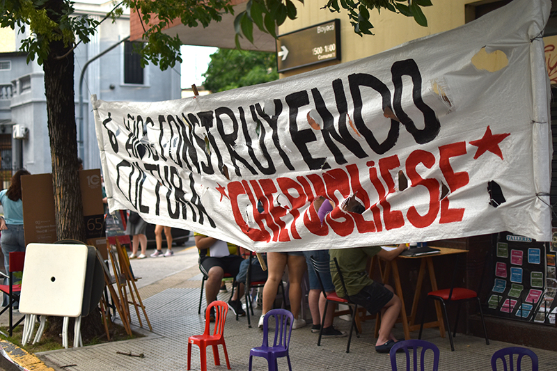 Che Pugliese abrió sus puertas en el barrio unos meses antes de la pandemia y eso les permitió que los vecinos, vecinas y comercios los conocieran, ante la emergencia sanitaria fueron un espacio muy importante para la comunidad, ese momento de tanta desazón. Es un colectivo de artistas, intelectuales, trabajadores y militantes de la cultura motorizados por el mismo sentimiento de empuñar un instrumento, un pincel, una pluma, la voz y cuerpo como herramientas de transformación.